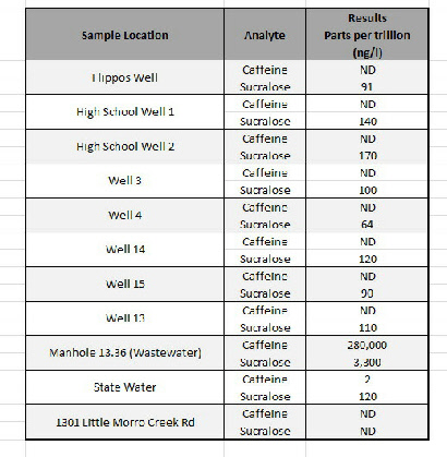 A few months later, City water staff drew well water samples to be tested for sucralose, which is considered a highly-