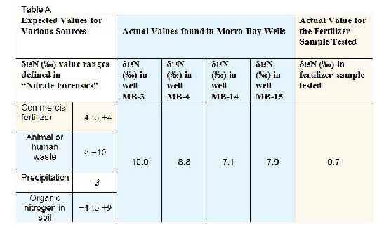 For example, no change in farming activities could account for the sudden change in nitrate level patterns, and the isotopic signatures of nitrates in the wells were completely inconsistent with those for fertilizer.