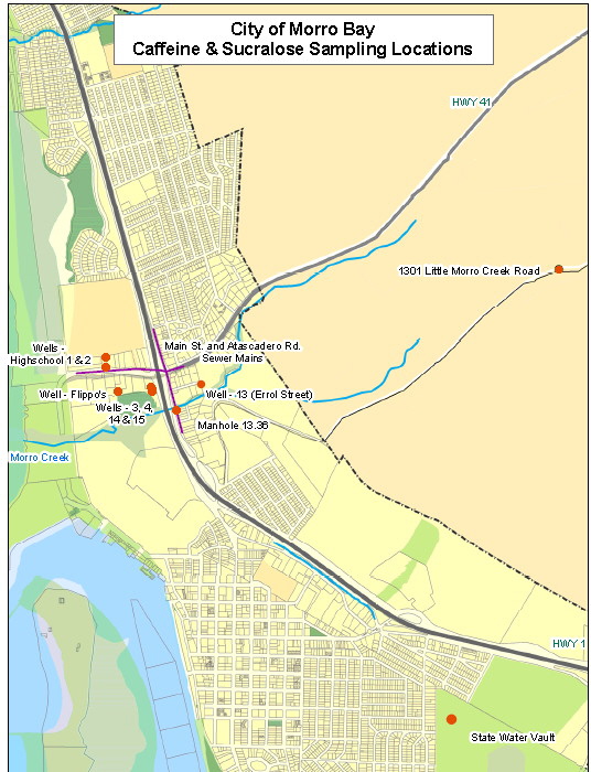 2. Testing of the private well at 1301 Little Morro Creek Road, to the east of town and upgradient of Morro Bay sewer lines, shows that water in the aquifer is free of sucralose contamination before reaching Morro Bay. When this sucralose-