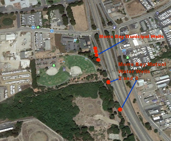 The following image shows the locations of the municipal wells and the Morro Bay Mutual Water wells: